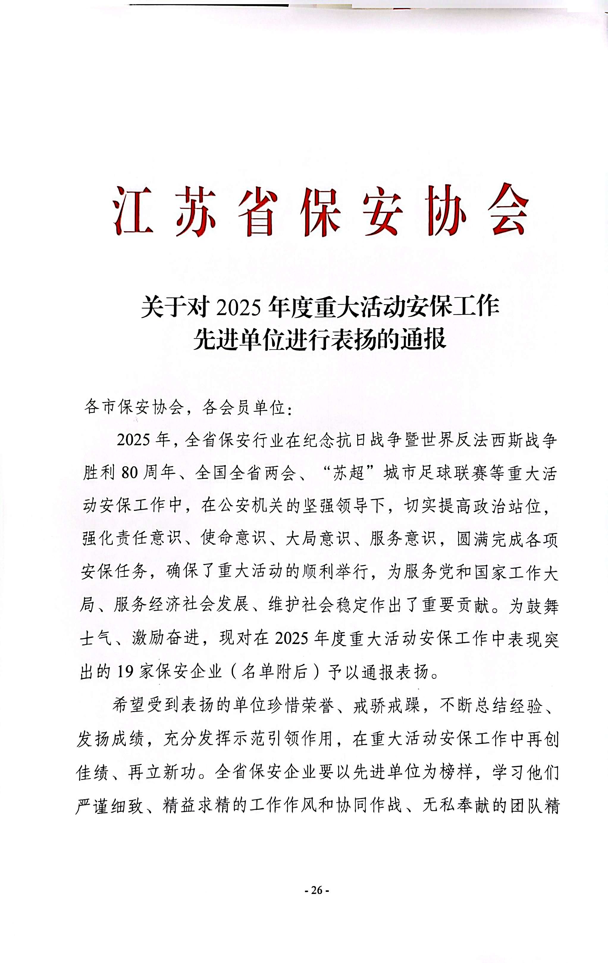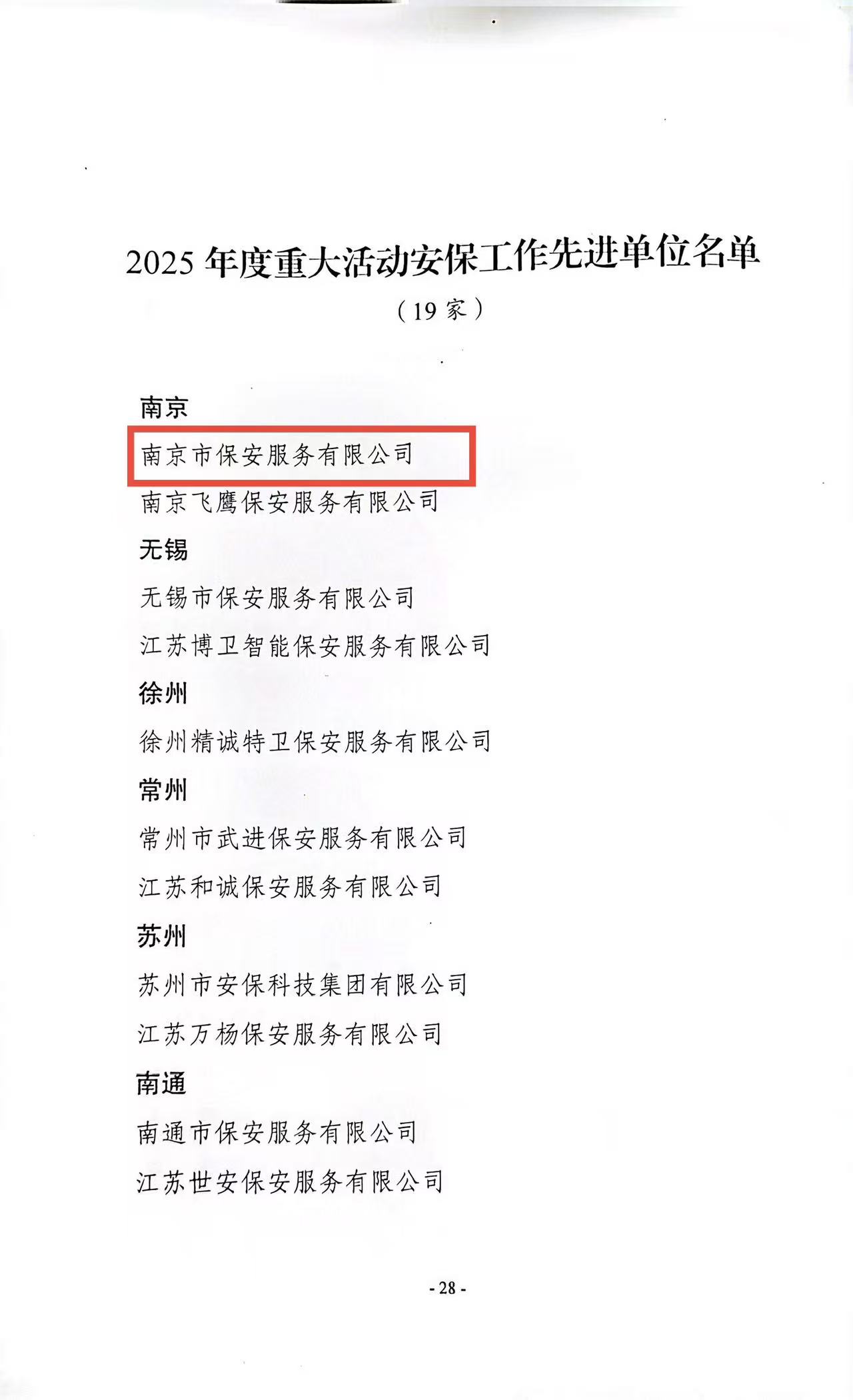 喜報(bào)!南京市保安服務(wù)有限公司榮獲“2025年度重大活動安保工作先進(jìn)單位”稱號